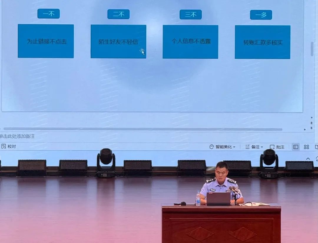 他通过详实的数据,剖析教育系统反诈形势,依托PPT和短视频讲解电信网络诈骗常见类型及防范要点。