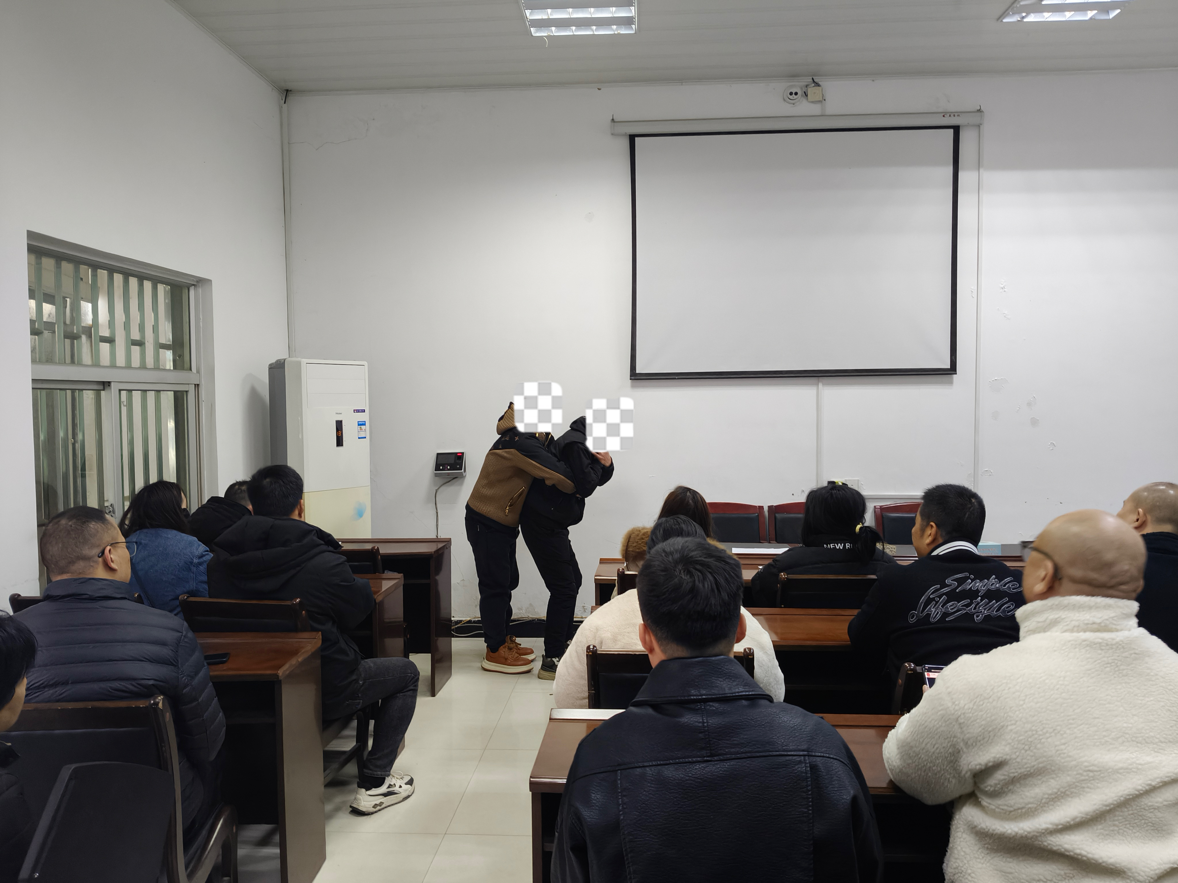 分享环节结束后,海姆立克急救法实操培训正式启动。司法所工作人员先通过专业教学视频,详细讲解操作流程与关键要领,助力社区矫正对象快速理解和掌握基本急救技能。随后,组织分组实操演练,工作人员及时纠正不规范动作,确保每位参与者都能熟练掌握海姆立克急救法。此次急救培训既填补了社区矫正对象的技能空白,也增强了其应对突发状况的自救互救能力。