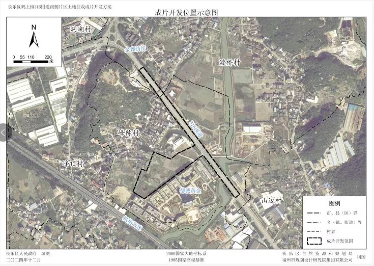 本方案东至莲柄港河道和316国道交界,西至峰陈村居民区,南至德诚珠宝文化创意产业园南侧厂房,北至福建金鑫纺织有限公司。片区涉及鹤上镇峰陈村,共1个镇1个村,涉及2个国有单位,不涉及省级和国家级开发区。