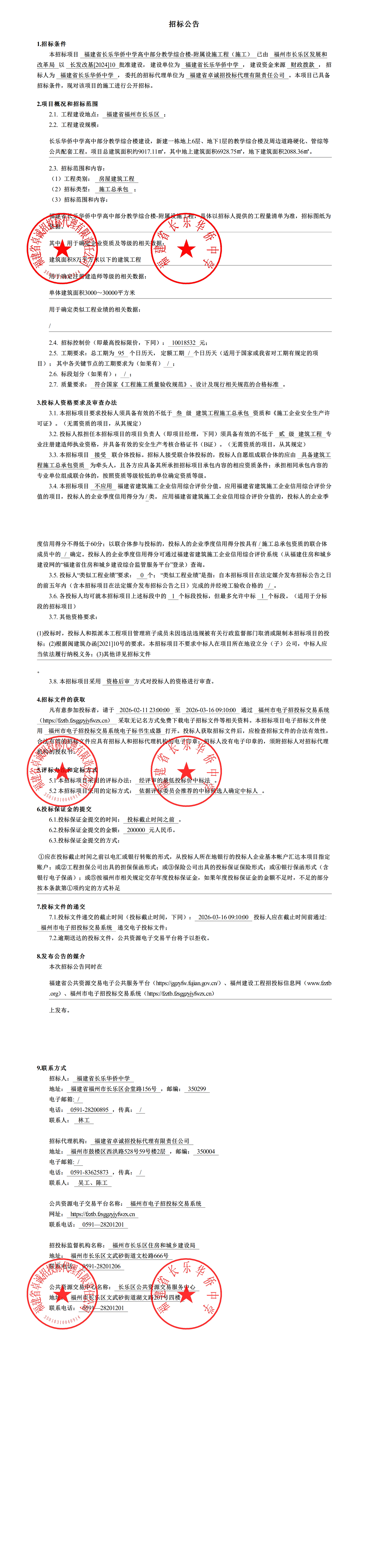 福建省5E对战 华侨中学高中部分教学综合楼-附属设施工程(施工)