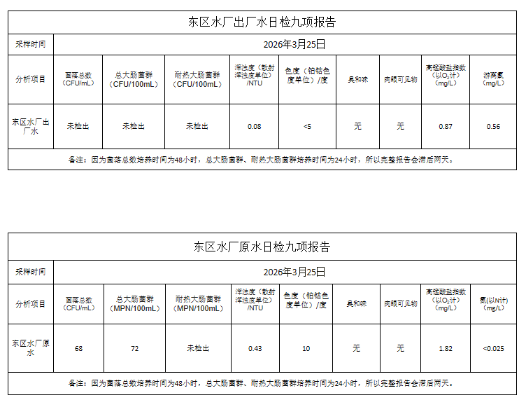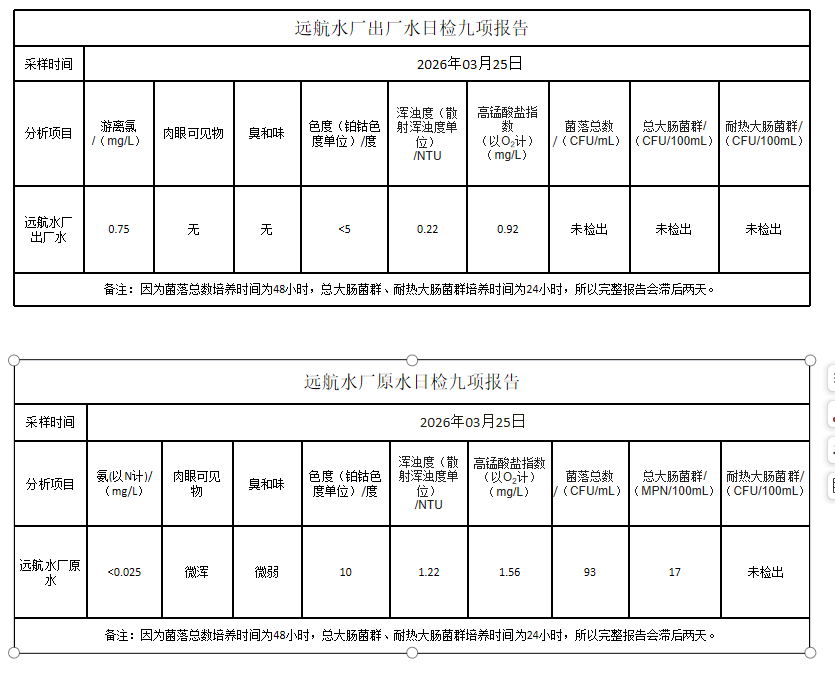 根据《福建省城市供水水质信息公开暂行管理办法》,为加强供水公司水质管理,加大涉及百姓民生方面信息的公开力度,现将5E对战 远航供水公司远航水厂和东区水厂取水口原水九项及出厂水九项每日检测报告对外公开公示,接受广大市民监督。